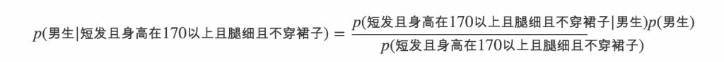 这里我通俗的介绍下如何通过条件概率来进行分类,假设我们看到了一个人的背影,想通过他背影的一些特征(数据)来判断这个人的性别(类别),假设其中涉及到的特征有: 是否是长发, 身高是否在170以上,腿细,是否穿裙子。当我们看到一个背影便会得到一个特征向量用来描述上述特征(1表示是,0表示否): ω=[0,1,1,0]