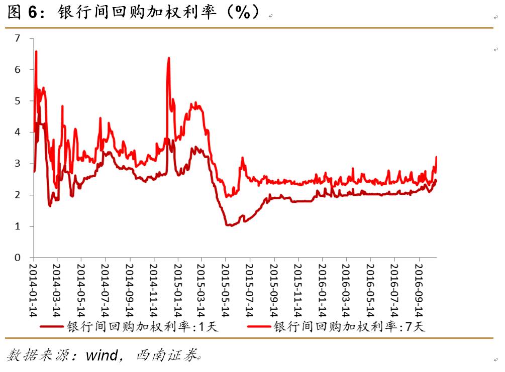 银行间1天质押回购加权利率和7天质押回购加权利率涨幅较小。本周末,银行间1天质押回购利率从上周末的2.3970%上升至2.4346%,7天质押回购利率从上周末的2.909%上涨至2.9764%,涨幅分别为1.57%和2.32%,整体较为平稳。