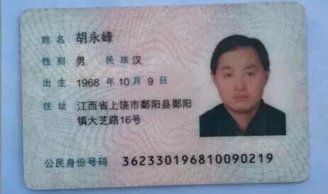 :胡永峰,男1968年10月9日出生,汉族,住江西省郡阳县郡阳镇大芝路016号,手机:13707030773.