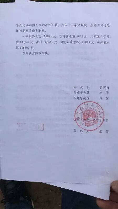 于2015年11月份,本人向林少波催还其所欠款项,林少波未理睬,。2015年12月11日作出违背事实的判决,判决驳回本人的诉讼请求。