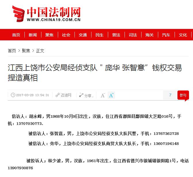 但是涉及到巨额资金“林少波”不择手段诬告陷害我,故意歪曲事实,说我诈骗他,要求上饶经侦支队立案查处,先经侦商贸大队“张智意”不分青红皂白,“权钱和关系”插手经济纠纷,徇私枉法,违法办案,故意编造虚假证据材料骗取领导,以子虚乌有的“虚假诉讼罪”之名误导相关领导仓促立案,2017年3月22。作为人民的警察,本应执法为民,公正执法。现张智意之徒违背人民警察的职业道德,违背法律,应受到法律的惩罚。为此请求郑厅长秉持正义,将“张智意”绳之以法,纠正其错误行为,撤销对本人的立案,对“林少波”诬告陷害行为依法查处。由此造成的一切损失,应由违法办案人员和单位及相关涉案人员赔偿。 谢谢!