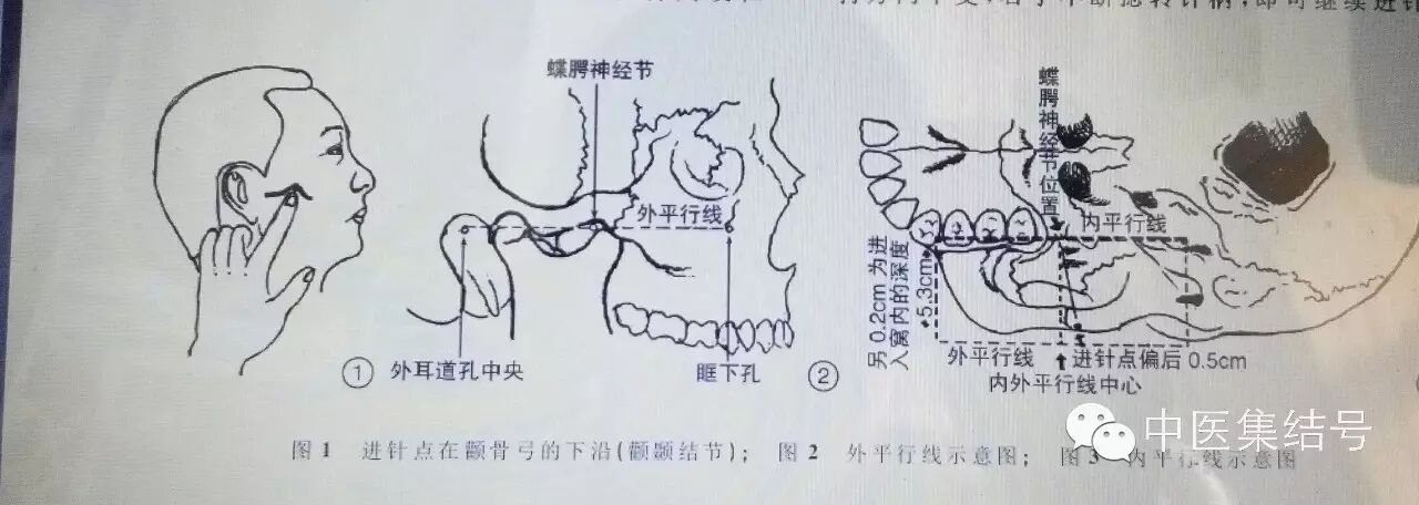 ③如果针尖仅进入皮下1 cm左右,即感阻力较大,是患者嚼肌腱紧张所致,要患者适当张口放松,即可继续进针。