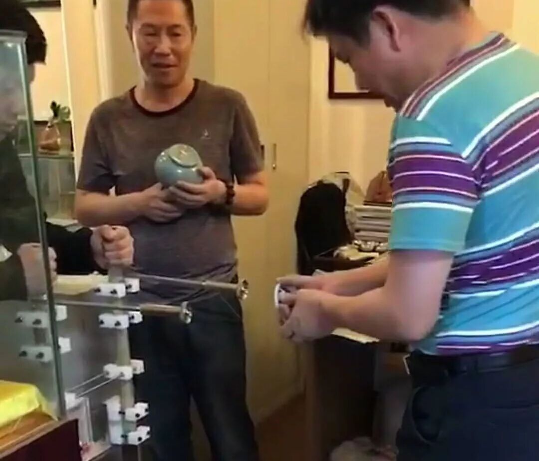 于是,我带了几件十多年前收藏的宋瓷,准备过去一试真假!为了考验它的准确性,我还故意带了两件从仿古作坊买回来的假哥窑混在里面。
