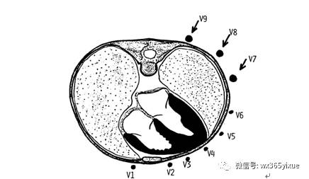 由于V1~V3导联是V7~V9导联的镜面像。当正后壁发生心肌梗死时,V7-9导联出现的ST-T抬高、T波倒置和病理性Q波在V1~V3导联上表现为ST段压低、T波增高和高R波,这种改变实际上是后壁导联心电图在右胸导联的“镜面映像”,故在常规12导联心电图V1-3导联出现这种改变时要高度怀疑为正后壁梗死。值得注意的是,V3R、V4R、V5R也可出现V1导联的心电图改变。
