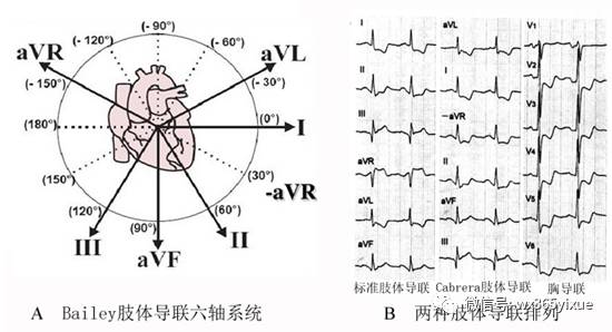 -aVR导联位于额面30°,I与II导联之间,可反映其他导联不易反映的下侧壁心肌损害。在标准肢体导联上难以明显显示,而Cabrera排列方式则可明确显示其作用。