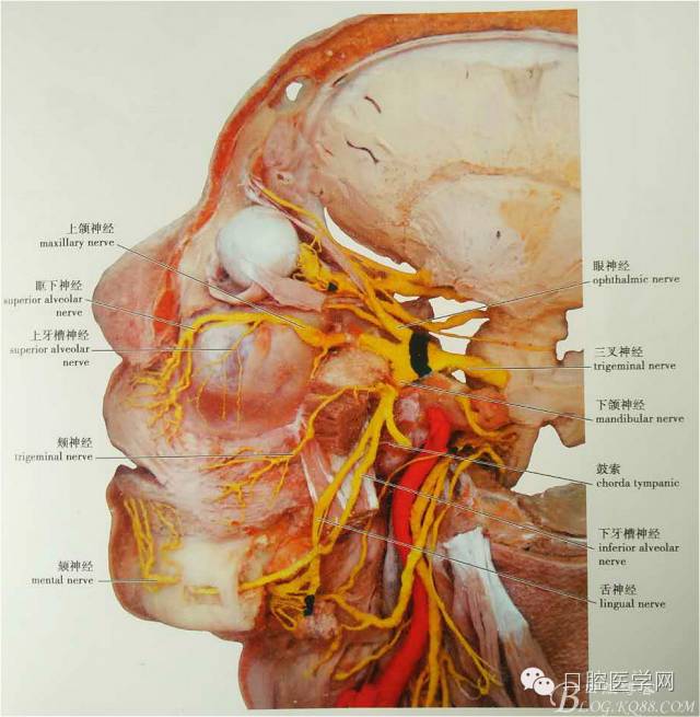 ![即使是老手也会失手的麻醉----下牙槽、舌、颊一次阻滞麻醉]() (转自口腔种植应用解剖实物图谱/人民卫生出版社)