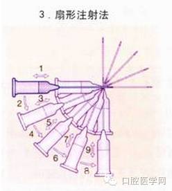 最后,在下牙槽、舌、颊一次阻滞麻醉过程中建议使用扇形麻醉法(具体数据需临床进一步统计研究),若稳妥起见避免颊长神经在作怪,就在患牙远中颊侧骨膜上再加一针浸润即可。