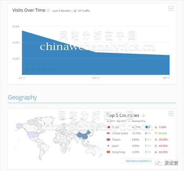 另一种流量估计工具的数据来源则可能不是通过panel,而是通过一些互联网基础设施或是互联网服务提供机构,比如从运营商搞数据,从网站分析工具提供商那里搞数据。这一类的典型工具是similarweb。
