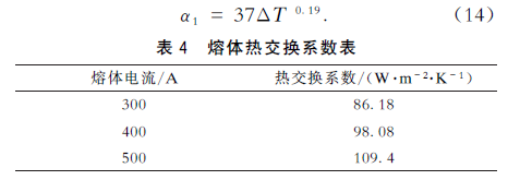 本节根据傅里叶定律得到熔体热交换系数的计算方法。根据式(13)的计算公式,可以较为准确地计算出熔体在特定环境下的热交换系数,进而在仿真的过程中,可以较为准确地模拟熔体实际工作情况,提高仿真的精确度。