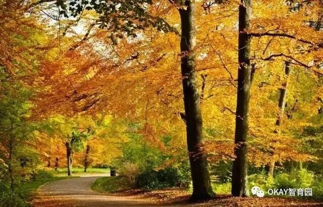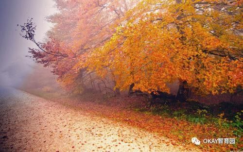 2、深秋时节,枝头黄叶被一夜秋风吹尽,遍地都是,好像铺了一条黄色的地毯。