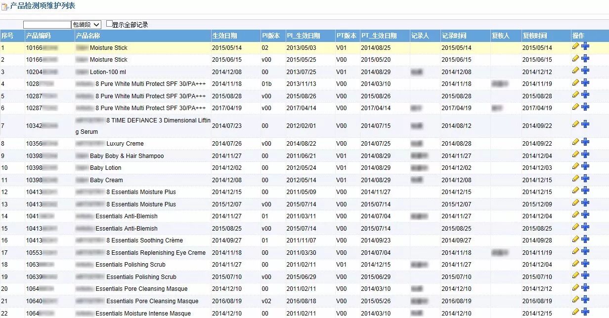 不同生产阶段用到不同生产文件。MT是生产半成品会用到的原料清单,包括物料编号、物料名称、物料用量、物料重量百分比、称量单位;PT是生产成品会用到的物料清单,包括部件号、组件说明、Sku用量、图案编码、Sku重量;PI是组装成品会用到的检测项和检测标准,按照检测项类别可以分为包装标准信息区、包装标准信息区字码设定、包装检测项。