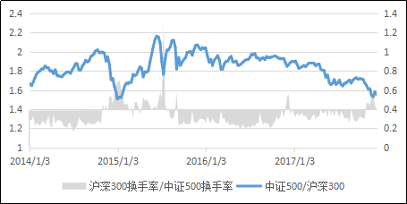 图4  沪深300/中证500 比值