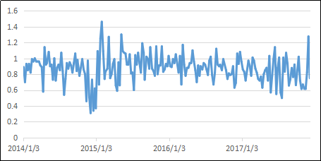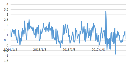 A股续跌。上周A股延续前面的调整局面,上证综指下跌0.83%。权重股表现较强,成长、周期股表现较弱。上证50上涨0.81%,沪深300微涨,中证500下跌近1.8%,创业板指下跌0.7%。市场成交量继续萎缩,中证全指日均成交额降至3600亿以下。两融余额继续维持在万亿以上,沪港通北向资金流出。指数日内波动率保持高位。