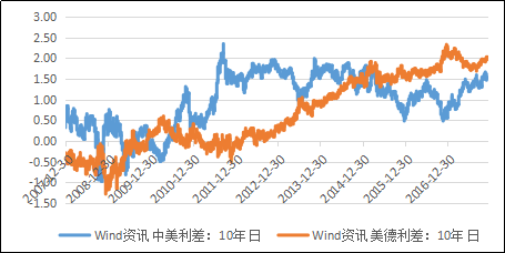 图24  10年中美利差及美德利差