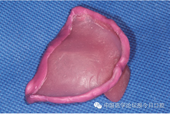 个别托盘的材料可选用自凝树脂或光固化树脂片,厚度约2 mm。如图3所示。
