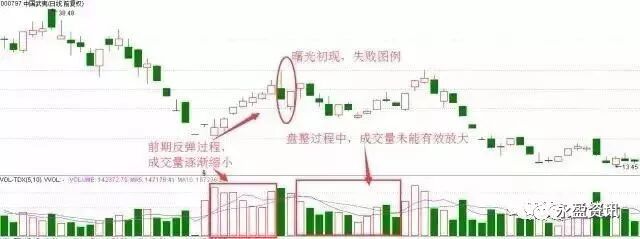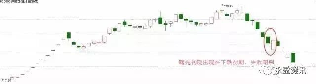 “曙光初现”一般情况下是后市看涨的技术图形,但也有失败的时候下面简要分析几个曾在K线组合学习过程中遇到过的失败曙光初现图例。