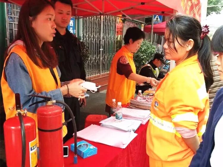 安全问题不容忽视!活动现场,志愿者通过派发安全知识宣传资料、结合灭火器等工具讲解安全防范知识等形式向过往居民普及安全知识。