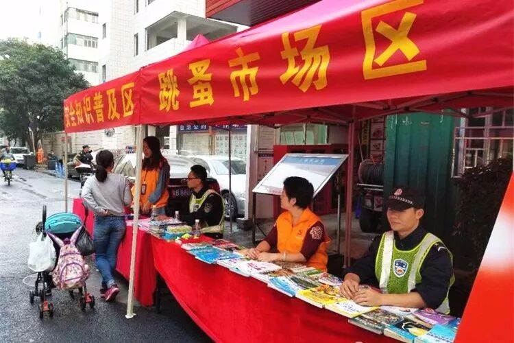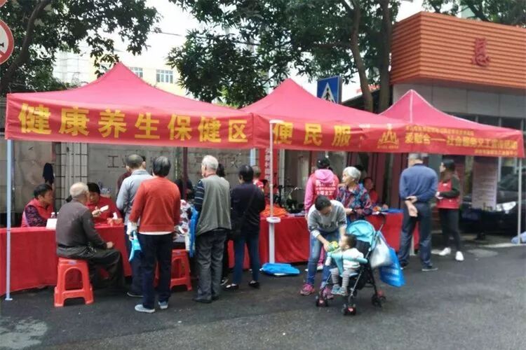 上龙社区的便民一条街分设了五个摊位,安全知识普及区、跳蚤市场区、健康养生保障区、便民服务区和创文宣传区。每个摊位都有工作人员和义工朋友们在尽心尽力地服务,现场气氛热烈、秩序井然。