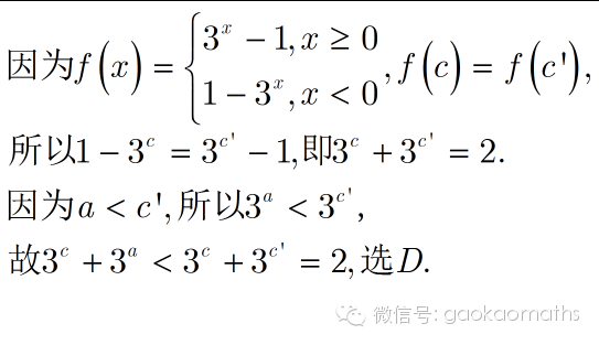 对于绝对值函数,通过作一条平行于x轴的平行线找到与f(c)相等的另外一个位置,是解决这类问题的常用做法.