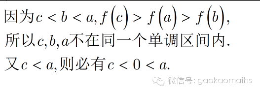 从已有的条件来看,b介于c,a之间,但是我们无法确定b>0还是b<0.结合函数值的大小关系,可能的图形如下.