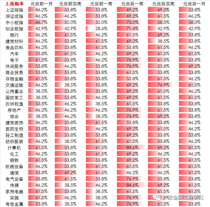 4. 日历效应方面,12月份上证指数上涨比例46%,而中小板指数上涨比例67%,过去12年里,12月份中小盘偏强。