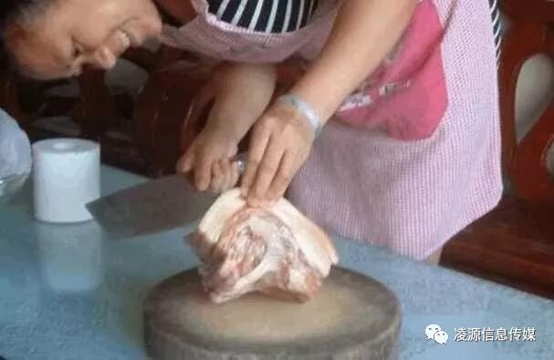 妻子用手一摸肉有点硬,以为是冻肉,于是拿来剁刀,打算剁一半下来吃。