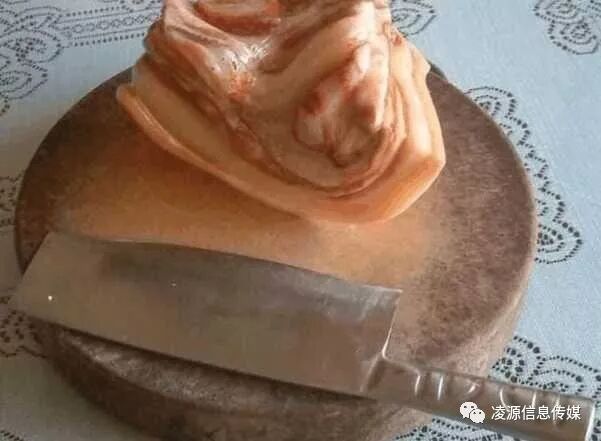 结果一刀下去,肉没事,刀却崩了个口子,妻子瞬间惊呆了。老公看见后也气懵了,他说,这是自己花高价收购来的肉石,越像肉的价格越高,这块五花肉奇石还是比较罕见的。