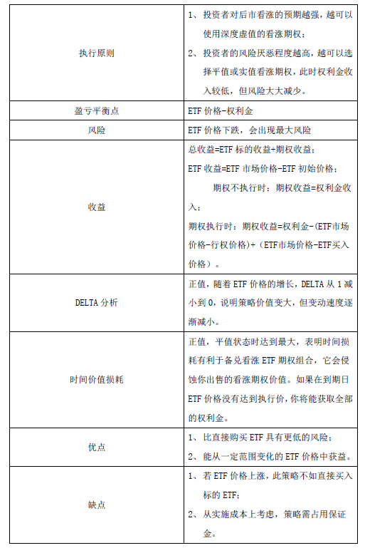 那么即将上市的ETF 期权能恰好地解决这批投资者的困境。若采用ETF 备兑开仓策略便可保证投资者不仅能分享持有ETF 中长期的投资价值,短期内又能避免ETF下跌的风险,同时出售所获的看涨期权权利金还能在一定程度上降低持有ETF的投资成本。