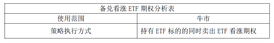 备兑开仓策略是在拥有标的证券的同时,卖出相应的认购期权,使用标的证券作为期权的担保品并赚取权利金收入的策略。