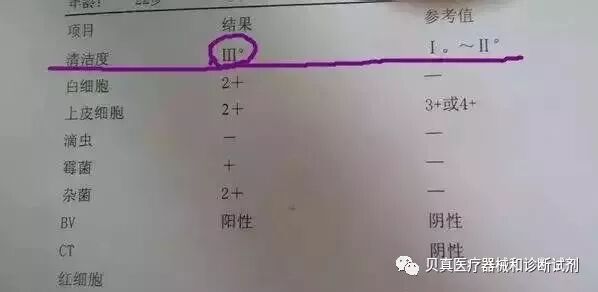 注:如图所示,清洁度为III,超过正常范围,说明阴道内部有炎症等问题。