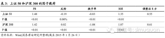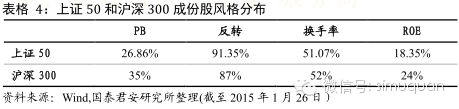 为了更好的理解上证 50 和沪深 300 成份股实际风格分布,我们先把全市场股票按不同风格进行了百分位排序,然后按指数成份股权重计算加权平均风格水平。从结果来看,上证 50 的成份股主要分布在低估值和高盈利能力区域。此外,可能由于市值过大,上证 50 成份股的换手率只属于市场平均水平。