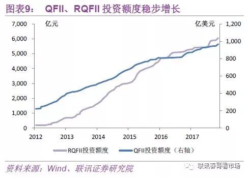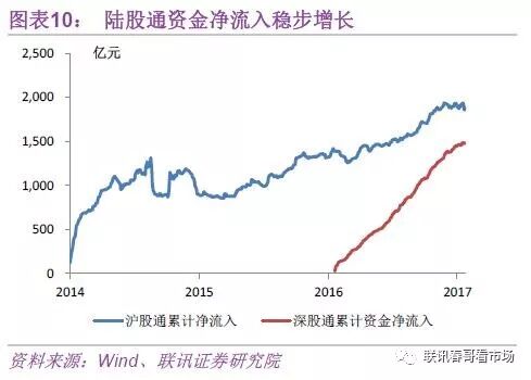 三个确定性较高的“千亿”资金来源,分别是QFIIRQFII、陆股通和海外指数基金。从过去多年的数据来看,QFIIRQFII的资金净流入相当稳健;而深沪港通开通以来,已经累计流入了3000多亿。海外指数基金的净流入远景可达万亿规模。