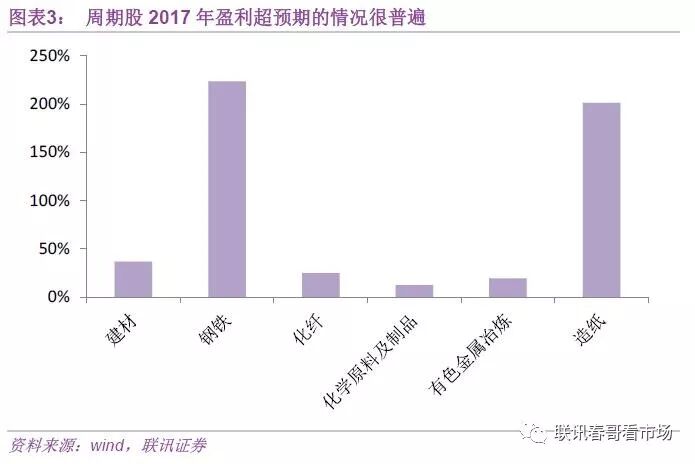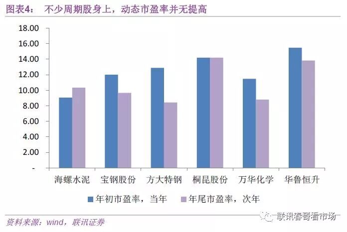 市场对周期股明年的盈利预期并没有特别的高,由此我们可以得到周期股今年的上涨主要是盈利大幅超预期所致。