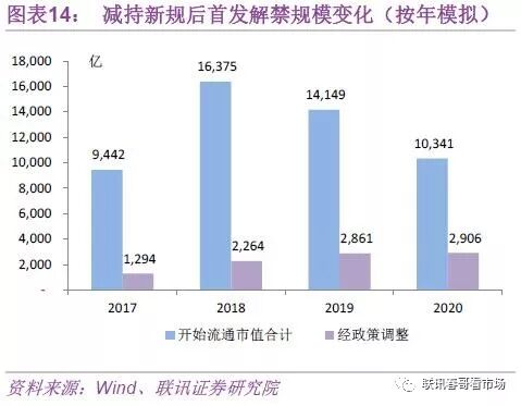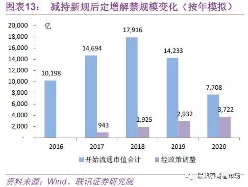 减持新规带来资金流出压力大幅下降。根据我们此前测算,定增、首发解禁后在二级市场上的套现规模均从理论中的万亿/年下降到千亿/年。