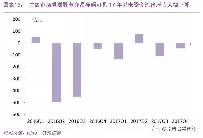 而从二级市场实际发生的重要股东交易净额来看,17年以来资金流出压力大幅下降,这种现象的解释一是市场的原因,二是减持新规真的起到了效果。
