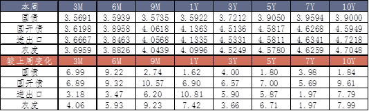 三、现券:本周周初虽延续上周下半周态势,利率有所下行,但终究难以持续,现券收益率随后便继续震荡下行,市场交投情绪依旧偏弱,担忧的关键节点仍未消除,本周公布的CPI及PPI数据并未对市场形成太大影响,短期内市场弱势或难改。