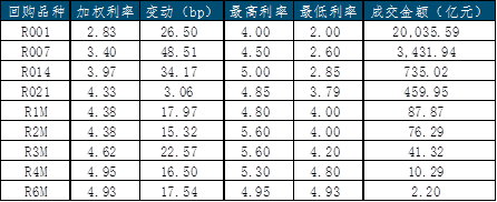 二、资金面:资金面:本周资金面逐步小幅收紧,市场处于紧平衡状态,利率小幅抬升,下周公开市场到期量较大,需留意资金面变动。