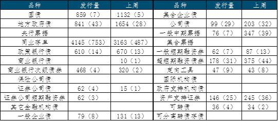 回购:本周央行公开市场净回笼2300亿元,公开市场操作利率无变动,MLF到期回笼665亿元,下周公开市场到期3400亿元,另MLF回笼1225亿元。截止10日,银行间各期限回购加权利率较上周有所上行,隔夜品种加权利率升至2.83,成交量降至20000亿元,交易所GC001单周加权利率下行至3.13,日均成交量降至7500亿元。公开市场操作存量(回购+MLF)有所回落,银行间融资余额变动不大。本周资金面逐步小幅收紧,市场处于紧平衡状态,利率小幅抬升,下周公开市场到期量较大,需留意资金面变动。