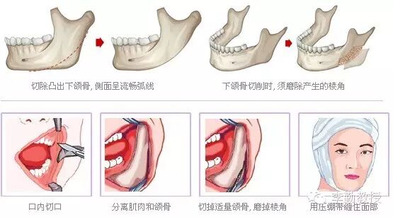 此方法既照顾了追求正面曲线的人,也照顾了侧面的弧度效果。此方法较前两种略显复杂,而且危险系数很高,但效果也最完美,适合各种要求改变脸型的患者。