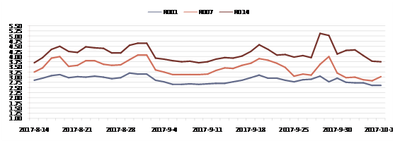 同业存款:本周同业存单发行量维持在2900亿元左右,发行主要集中在1个月及3个月品种,其中股份制银行1个月存单价格下行至4.00,3个月存单价格升至4.45-4.55之间,6个月存单价格升至4.55-4.60。同业存款方面,与存单类似,1个月内品种价格显著回落,3个月及6个月跨年品种利率上行。