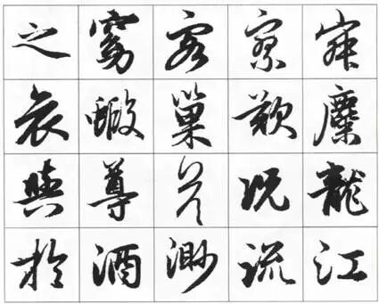 此卷中的三点水较多,但写法上并不强求多变,而大多只是行笔间的细微差异。附图中“酒”、“渺”二字采用上断下连的写法,这也是最常见的处理,只有“流”、“江”、“海”等少烽字作了变化。
