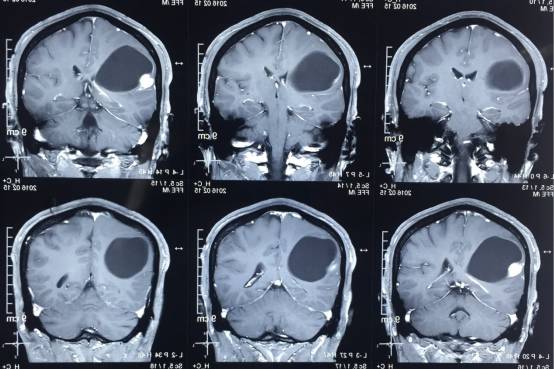 PXA主要位于大脑半球,以颞叶为最多见,其次是顶叶、枕叶和额叶,在影像学上PXA的典型表现为位于脑膜下的囊性病变伴壁结节。