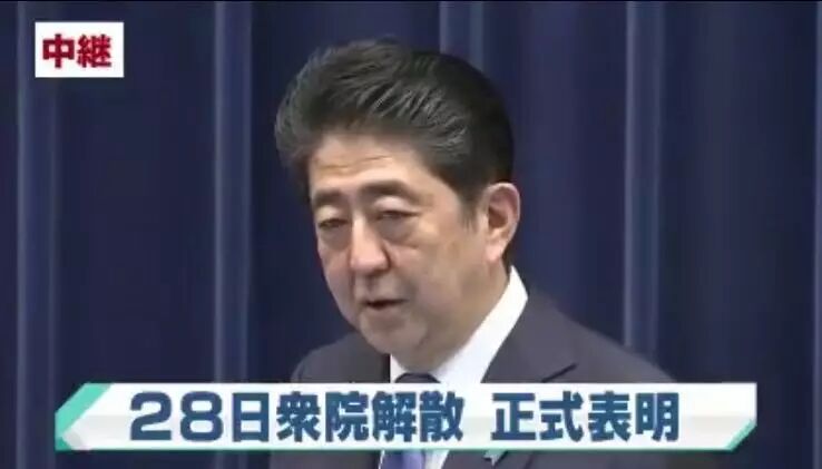 果不其然,在随后的9月23日,安倍内阁放出消息确认,称安倍将在28日召集临时国会并宣布解散众议院。9月25日晚,安倍现身临时记者会,再次证实了此条消息的准确性。