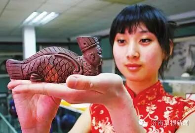 在通往长清万德的104国道中南段,路边市场可以看到造型各异的木鱼石摆件、茶具。许多人慕名而来,挑选自己中意的作品。