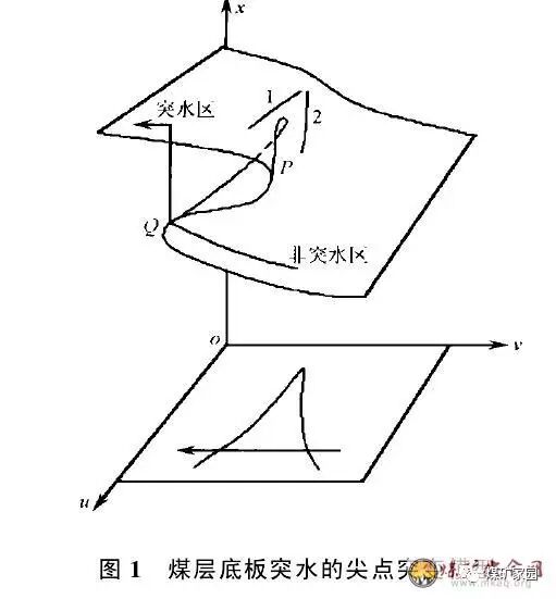 在承压水上开采煤层后, 底板岩层的原始应力状态被破坏, 致使应力重新分布, 从而导致底板岩层失稳破坏形成导水裂隙, 其结果往往造成底板承压水通过采动裂隙突然涌入开采作业空间, 形成底板突水。整个过程具有非连续突变特征,属于突变理论研究的范畴。因此,采用突变理论的方法对煤层底板突水问题进行研究,是符合其本质特征的,并有助于寻求底板突水危险性预测的新途径。