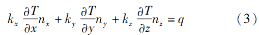 表示Γ1边界上温度值;kx、ky、kz分别为齿轮材料沿坐标系中x、y、z方向的导热系数;nx、ny、nz分别表示为边界外法线的方向余弦;q=q(Γ,t)为Γ2边界上给定的热流密度。