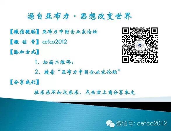 敬请关注亚布力中国企业家论坛官方网站www.cefco.cn或搜索中文域名“亚布力.世界”、官方微信服务号cefco2014、订阅号cefco2012、官方微博“亚布力中国企业家论坛”相关内容专题。