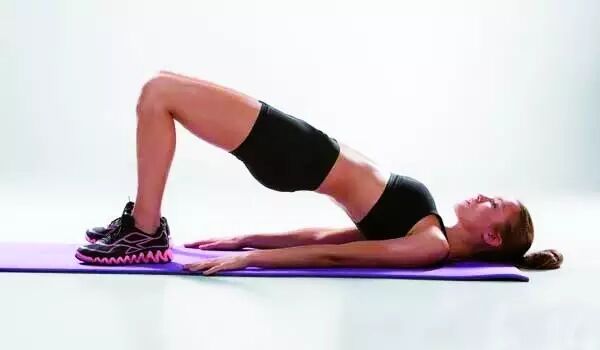 2、拱桥运动:卧床,双肘双脚撑床,臀部使劲向上抬至最高,坚持5-10秒,循环10次