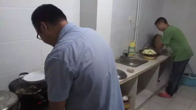 两名爱好厨艺的年轻职工开始下厨,准备好好地犒劳犒劳大家。班组的厨房比家里的大多了哈