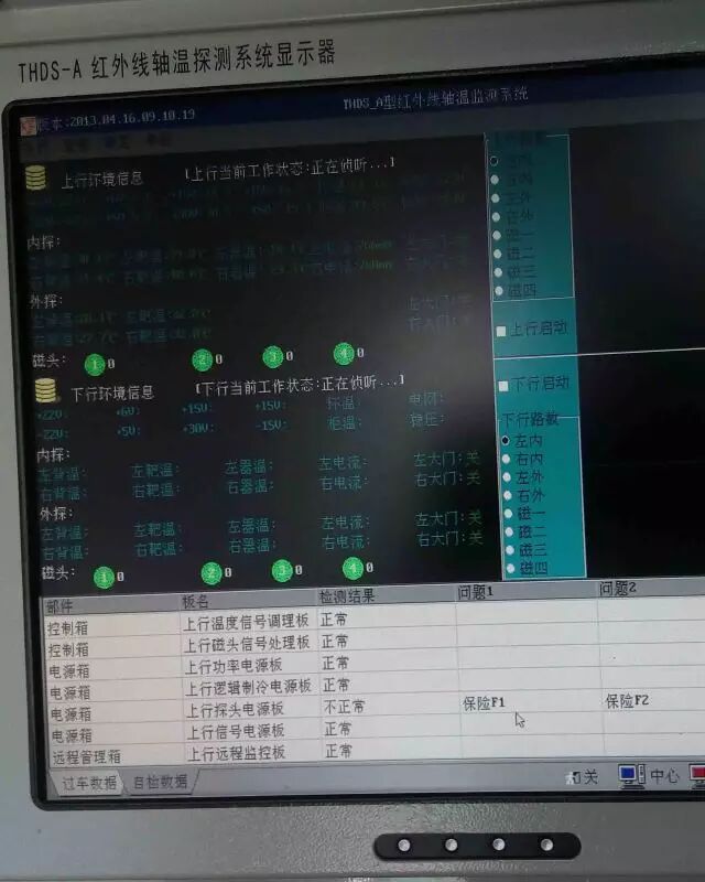 进行轨边作业,开盖检查左右探头防护箱内的探头、热靶等器件状况。TH设备探测轴温精度是否达标,轨边设备可是源头质量
